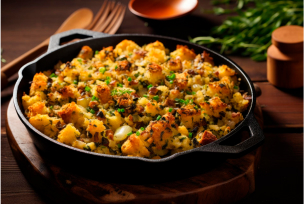Tender chicken pieces cooked with onions herbs green peppers specially spiced.